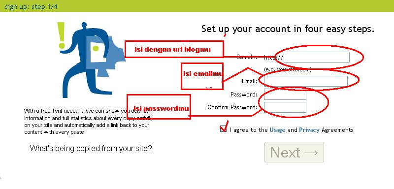 Adalah Tynt.com yang menyediakan jasa seperti itu,nah berikut langkah-langkah menggunakan fasilitas Tynt.com buat yang ingin mendapatkan backlink secara cuma-cuma.Oke ikuti aja ya langkah-langkah berikut ini,saya mau tidur dulu,udah seharian gak tidur,zzzzzzzz.