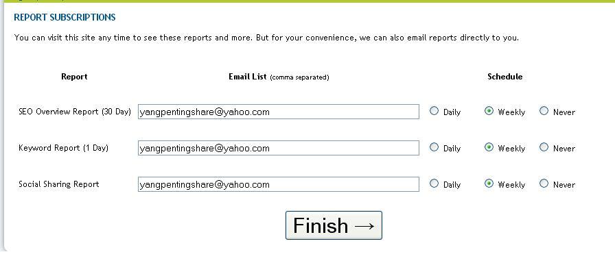7.Lalu pilih moderasi pengiriman laporan berkala ke emailmu,harian,mingguan atau tidak pernah