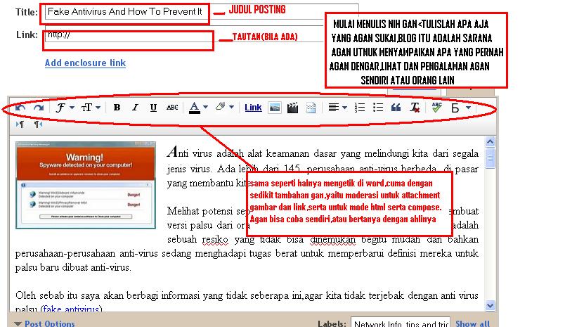 8.Mulailah menulis suatu postingan yang akan sobat tampilkan di blog