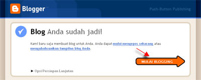 6.Akan ada tampilan "Blog Anda sudah jadi",mulailah ngeblog...