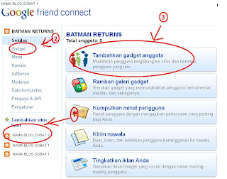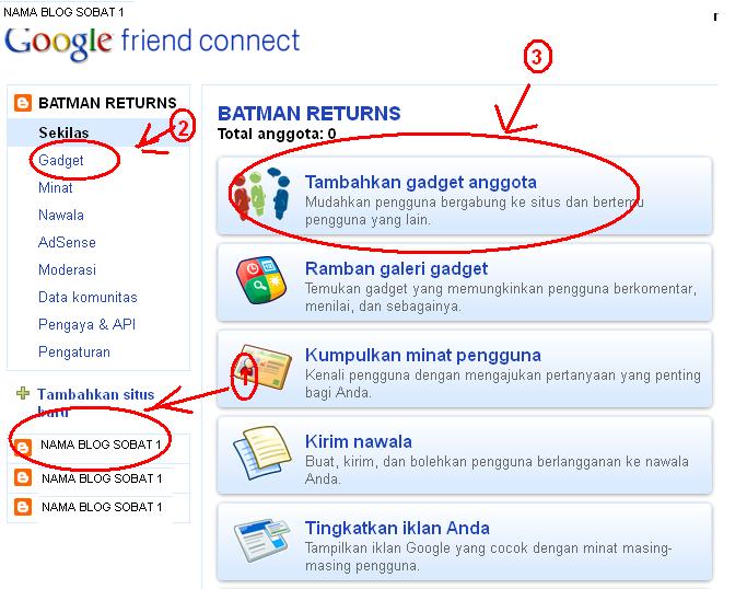 Lalu untuk Kode widget nya anda bisa dapatkan Di Google friend connect.